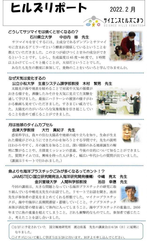 令和4年ヒルズリポート2月号 – サイエンスヒルズこまつ