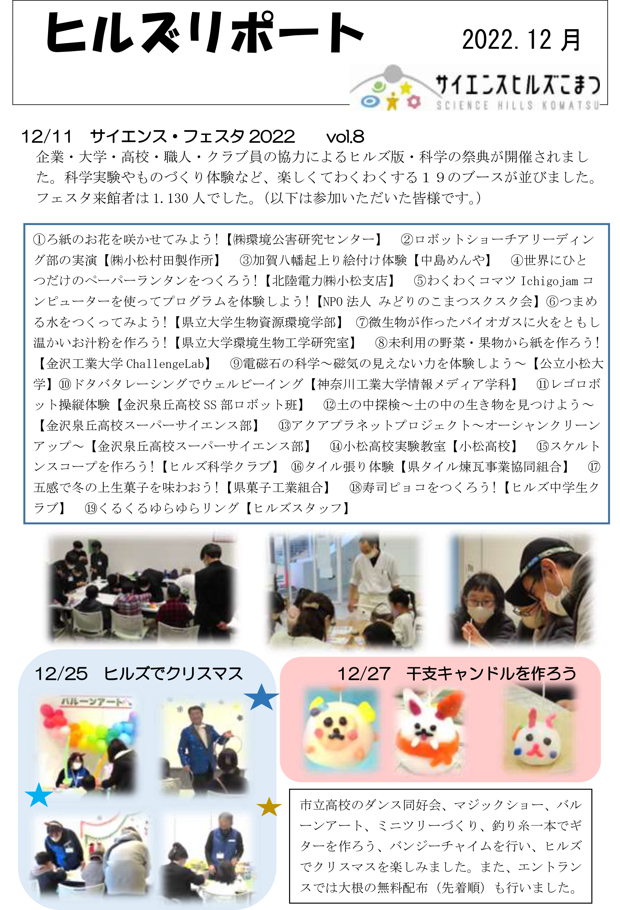 令和4年ヒルズリポート12月号 – サイエンスヒルズこまつ