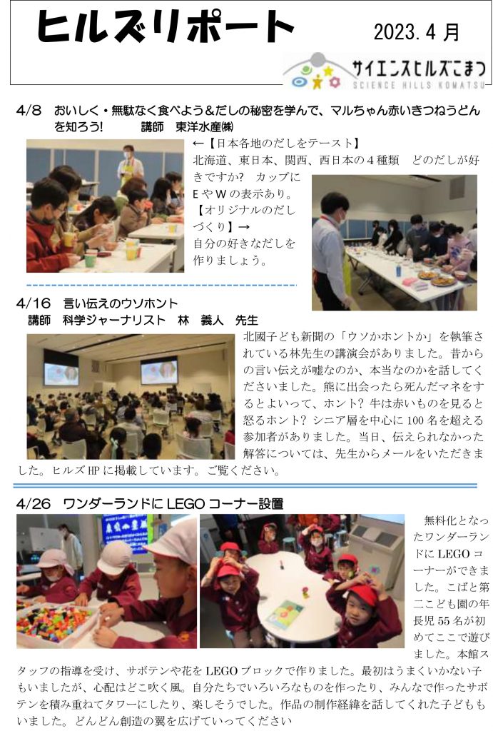 令和5年ヒルズリポート4月号 – サイエンスヒルズこまつ